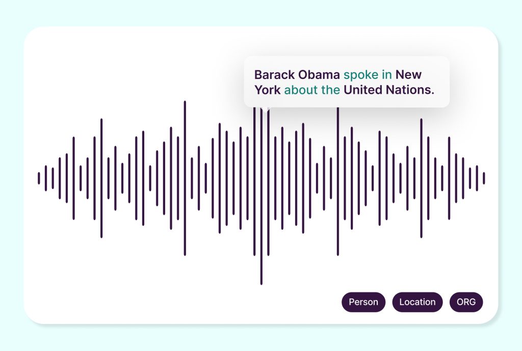 Recognizes and labels spoken entities such as names, locations, organizations, and key topics to improve voice search and AI-powered recommendations.