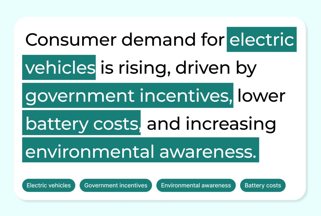 Identifies the most relevant keywords or phrases in a document to improve searchability and content discovery.