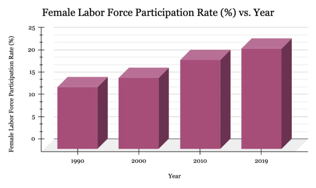 According to the World Bank data, Pakistan’s female labor force participation rate was 22.6% in 2019, significantly lower than the global average of 52.6% and the South Asian average of 25.6%. This represents a significant untapped potential in the Pakistani workforce.